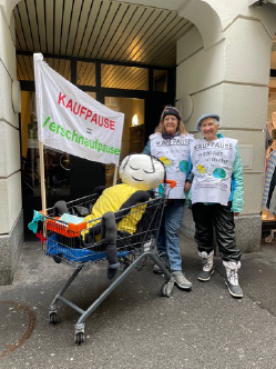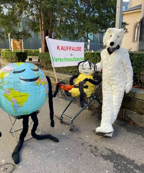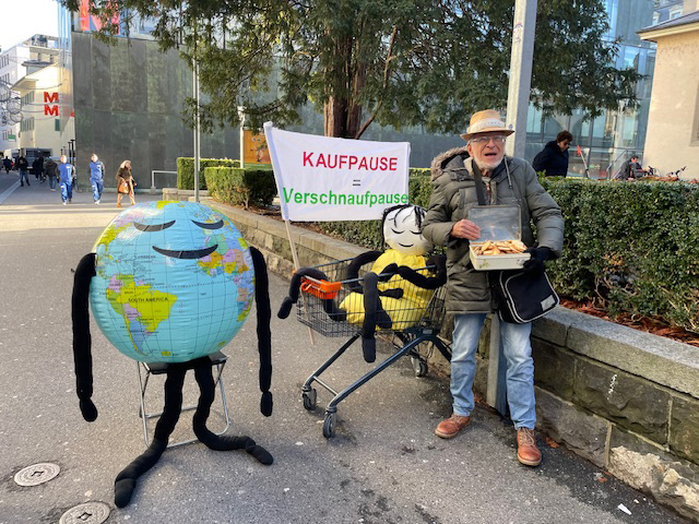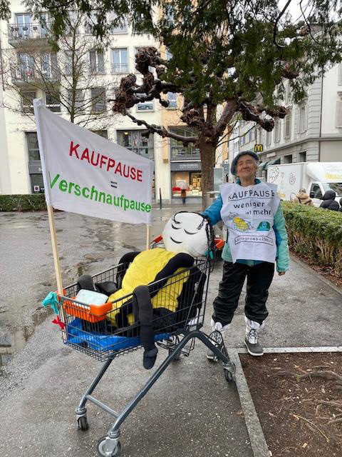 Die Aktion weckte reges Interesse und fand viel Zuspruch! Es scheint, dass sich immer mehr Menschen bewusst sind, dass unser Kaufverhalten reflektiert werden sollte und dass eine «bewusste Pause» ein Anfang sein kann. Einige Passanten haben sogar eine spontane Pause gemacht und mit uns gespielt.